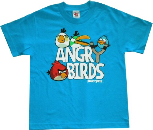 Licensed Angry Birds T Shirt. T Shirt features front image of Angry Birds. Turquoise T shirt. Youth Boys size (8-20). 100% Cotton.