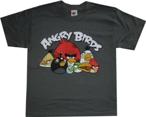Licensed Angry Birds T Shirt. T Shirt features front image of Angry Birds. Youth Boys size (8-20). 100% Cotton. Color: Charcoal.