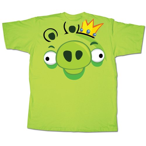 Licensed Angry Birds T Shirt. T Shirt features front image of Pig face. Adult men size. 100% Cotton. Lime color shirt.